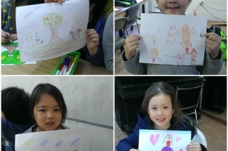 1. 감정표현하는 단어 배우기 2. 그림 그리고 자신의 상황설명하기 3. 받아쓰기 시험 4. 한 문장쓰기 연습 오늘은 새로온 친구들이 정말 많았어요. 교실도 바꾸고 우리반에서 같이 공부하게 된 미카엘, 희선이, 민재, 은찬이 모두 환영합니다. 우리모두 열심히 한글을 익히고 배웠으면 좋겠어요. 화이팅!