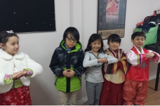 1교시에는 문장 만들기, 쓰기, 읽기, 말하기를 공부하고 2교시에는 한복(저고리, 치마, 버선, 댕기, 속치마, 속바지,속저고리, 고무신, 고름 , 동정),구정이란? 새해란? 새배하는 법등에 대해 배웠답니다. 그리고 한인회에서 하는 신년하례식에 참석하여 어르신들께 세배를 드리고 새배돈도 받고 맛있는 떡국도 먹었답니다. 영사님이 말씀하시는 좋은 덕담도 아이들과 함께 나누고 즐거운 시간을 가졌답니다. 오늘 하루 아이들의 얼굴에서 웃음꽃이 떠나지 않았습니다.